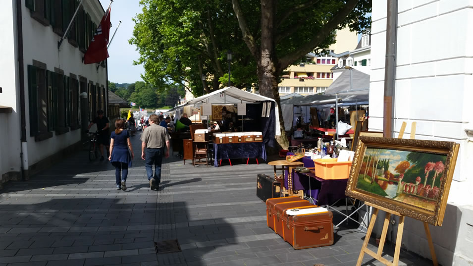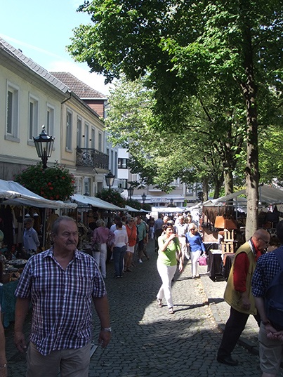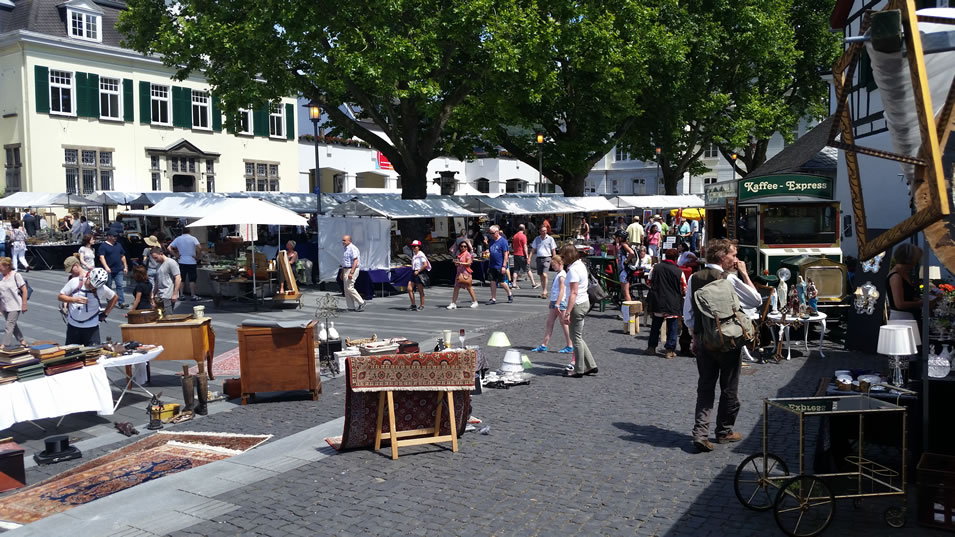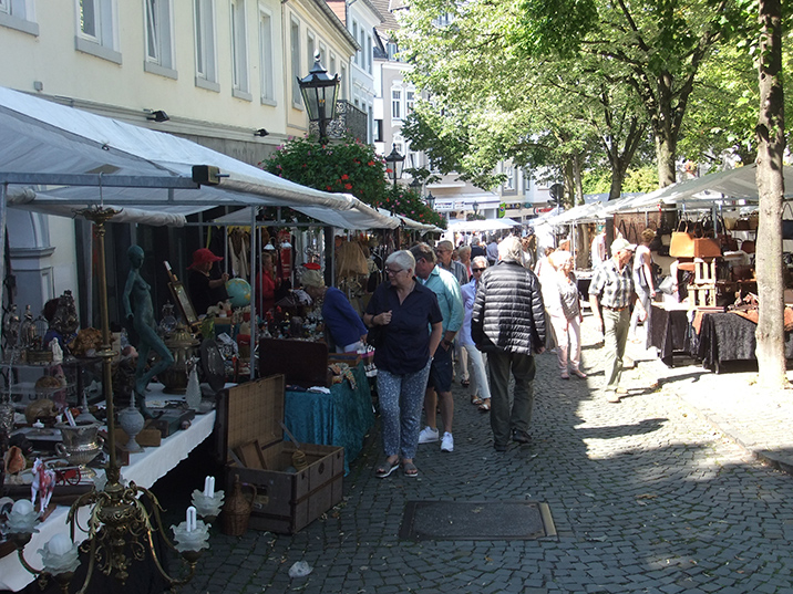 Vom Friedensplatz über die Vivatgasse, dem Bottler-Platz, der Windeck- und der Poststraße präsentieren an rund 200 Ständen internationale Aussteller ein breites Angebot an Antikem und Kuriosem. Neben einem umfangreichen Sortiment an Kleinantiquitäten aus Porzellan, Glas oder Silber, verspricht diese Veranstaltung ein reichhaltiges Angebot an Gemälden sowie Bronzen und antiken Möbeln, von bäuerlich-rustikal bis zu schellack-poliertem Art-Déco. Aber auch für Kunst- und Designliebhaber ist etwas dabei. Die Zahlreichen Cafés und Restaurants am Platz laden zum Verweilen oder zum Essen und Trinken ein.