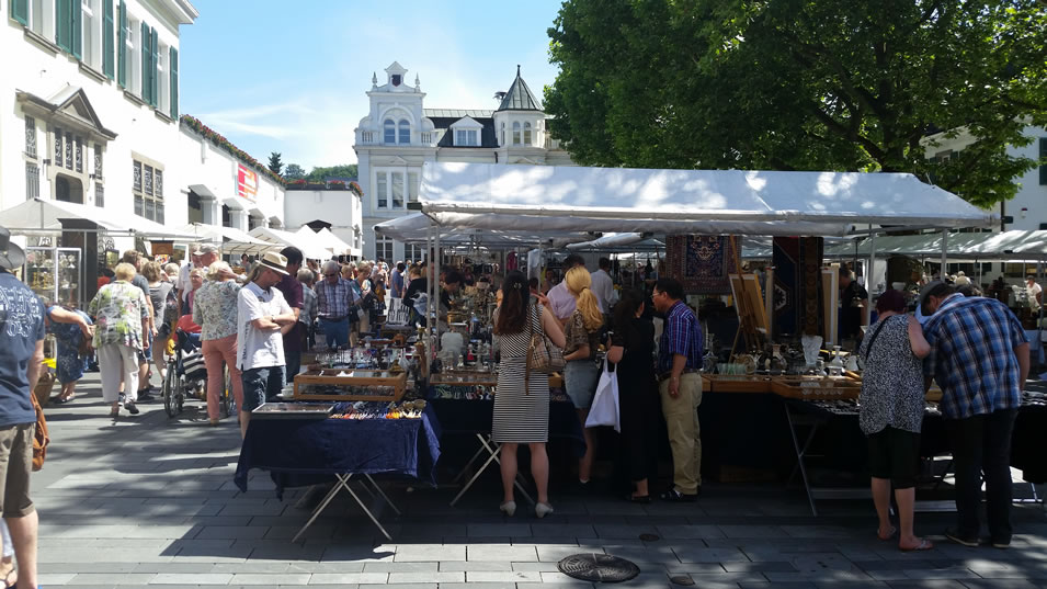 An zwei Sonntagen im Jahr lässt sich hier nach hochwertigen Antiquitäten und Kuriosa stöbern. Das Angebot der zahlreichen Antik-, Kunst- & Designstände reicht von Möbeln, Schmuck, Gemälden, Porzellan bis zu ausgefallenem Design- und Kunstunikaten. Die vielen ortsansässigen Cafés rund um den Markt, den Kirchplatz und in der Fußgängerzone laden zum Verweilen und Genießen der einmaligen Marktatmosphäre ein.