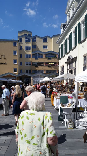 in der Fußgängerzone – findet der Rhein-Antik-, Kunst- & Design-