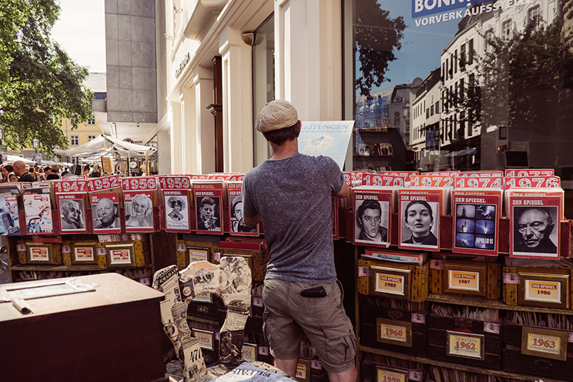 Viermal im Jahr findet der große Rhein-Antik-, Kunst- & Designmarkt in der Bonner Innenstadt auf dem Friedensplatz, der Vivatgasse, dem Bottler-Platz, der Windeck- und der Poststraße statt.