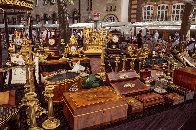 In Siegburg finden sich jedes Jahr im Frühjahr und im Herbst ausgewählte Antik-, Kunst- & Designhändler auf dem Marktplatz zusammen, um dem Publikum ihre Schätze aus der Vergangenheit zu präsentieren. Sie bieten ein reichhaltiges Angebot von Biedermeiermöbeln über wertvolles Porzellan bis hin zu ausgefallenen Schmuckstücken. Antiquarische Bücher lassen die Phantasie eines jeden Lesers in längst vergangene Zeiten eintauchen. Auch für Gartenliebhaber ist meist immer die ein oder andere Steinstatue oder Sitzgarnitur zu erwerben.